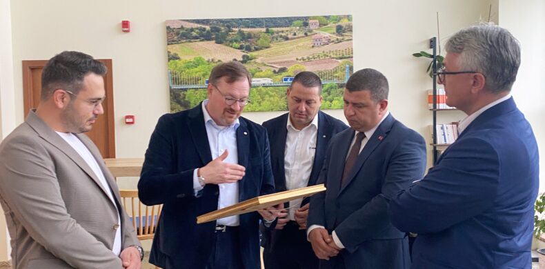 Ziyaretin sonunda Tire Belediye Başkanı Hayati Okuroğlu, bölge ekonomisine katkıları ve yatırımları dolayısıyla Bernard Krone’ye teşekkür plaketi takdim etti.