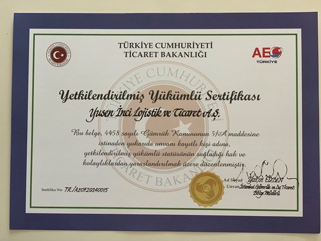 Türkiye ve dünyada 22 yıldır lojistik hizmeti veren Yusen İnci Lojistik, sektöründe güçlü bir global oyuncu olarak fark yaratmaya devam ediyor. Yusen İnci Lojistik’in, Ticaret Bakanlığı’na yaptığı AEO, Yetkilendirilmiş Yükümlü Statüsü (YYS) başvurusu sonrasında bakanlık tarafından yapılan denetimler sonucunda belgeyi almaya hak kazandı. Yusen İnci Lojistik, YYS sertifikası ile ticaret güvenilirliği, iş yapma biçimi, kontrol metotları onaylanan Türkiye’nin 500 şirketinden biri oldu.